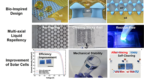 -물로 지워지지 않던 ‘끈적 오염’, 오일 기반 자가세정으로 해결 - 인캡슐레이션 막을 활용한 얇고 유연한 실리콘 태양전지 성능 향상 - 우수한 기계적 강도/정밀한 복제기술을 기반으로 상용화 가능성 극대화